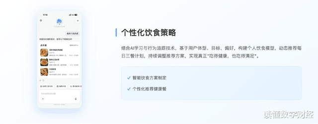 其次是个性化饮食策略。结合AI学习与行为追踪技术,基于用户体型、目标、偏好,构建个人饮食模型,动态推荐每日三餐计划,持续调整推荐方案。